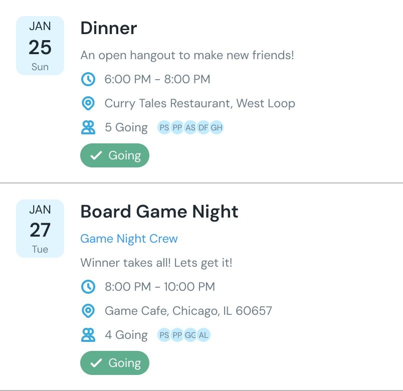 Circles meet on a recurring cadence — weekly, bi-weekly, or monthly. Repetition builds familiarity. Familiarity builds trust. That's how you make your best friends.