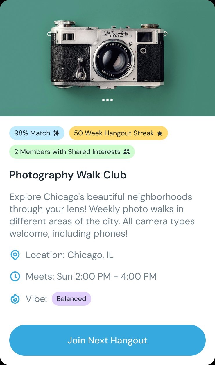 Start with a casual in-person hangout. Find your people. Build a Circle. Make friendships that last.